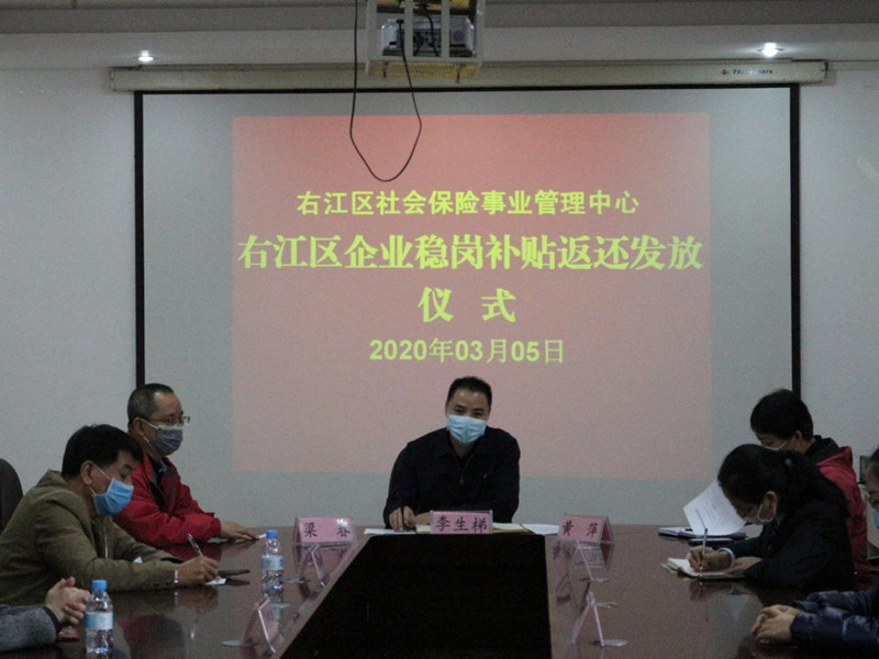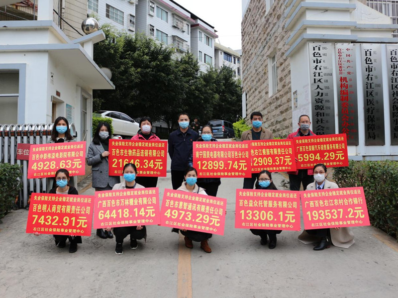 ??? 3月5日,在右江區(qū)社會(huì)保險(xiǎn)事業(yè)管理中心召開穩(wěn)崗補(bǔ)貼返還工作會(huì)議暨企業(yè)穩(wěn)崗補(bǔ)貼返還發(fā)放儀式,我公司作為首批返還企業(yè)代表之一應(yīng)邀參加,會(huì)上社保中心主任李生梯對(duì)我公司響應(yīng)穩(wěn)崗補(bǔ)貼政策給予高度肯定,期望通過穩(wěn)崗補(bǔ)貼返還為公司的穩(wěn)定復(fù)產(chǎn)助力。截止目前,我公司有8家子公司符合享受失業(yè)保險(xiǎn)穩(wěn)崗返還補(bǔ)貼條件,獲得穩(wěn)崗返還補(bǔ)貼3.6萬元,惠及企業(yè)員工約150人。(通訊員:黃 芬)
