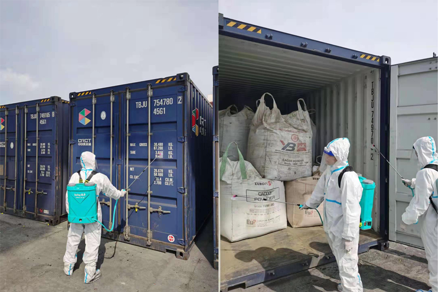 圖為貨物到達(dá)國際貿(mào)易港及清關(guān)消殺