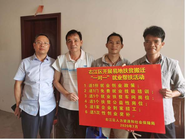 ????????近日,由右江區(qū)人力資源和社會(huì)保障局主辦,百色益嘉人力資源有限公司承辦的右江區(qū)易地扶貧搬遷“一對一”就業(yè)幫扶活動(dòng)在右江區(qū)老鄉(xiāng)家園-迎龍易地扶貧搬遷安置小鎮(zhèn)順利開展。本次活動(dòng)主要援助對象為右江區(qū)老鄉(xiāng)家園-迎龍易地扶貧搬遷安置小鎮(zhèn)未實(shí)現(xiàn)轉(zhuǎn)移就業(yè)有就業(yè)意向人員,集中幫扶搬遷戶的就業(yè)創(chuàng)業(yè)。