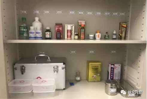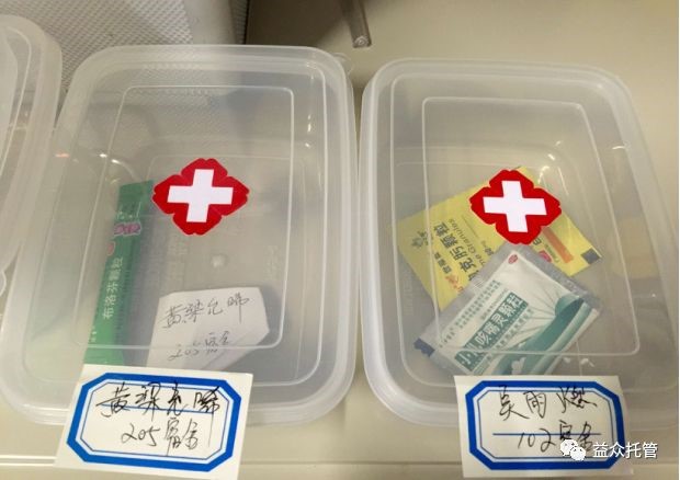 校區(qū)醫(yī)療角還專門設(shè)立了放置生病學(xué)生從家里帶來學(xué)校服用的藥品,每位學(xué)生按標(biāo)簽標(biāo)好,密封放置藥盒中,確保藥品不混淆、不受潮,按家長(zhǎng)要求照顧孩子按時(shí)按量服藥。