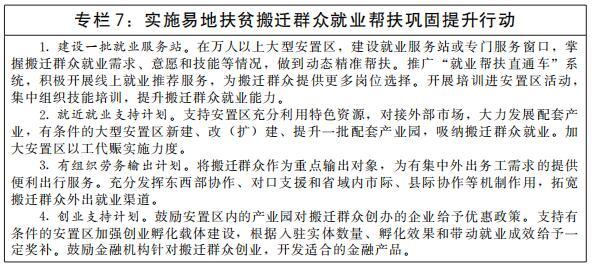 穩(wěn)定脫貧人口就業(yè)。健全脫貧人口、農(nóng)村低收入人口就業(yè)幫扶長(zhǎng)效機(jī)制,保持脫貧人口就業(yè)領(lǐng)域的扶持政策、資金支持、幫扶力量總體穩(wěn)定。健全有組織勞務(wù)輸出工作機(jī)制,將脫貧人口作為優(yōu)先保障對(duì)象,穩(wěn)定外出務(wù)工規(guī)模。支持脫貧地區(qū)大力發(fā)展當(dāng)?shù)貎?yōu)勢(shì)特色產(chǎn)業(yè),繼續(xù)發(fā)揮就業(yè)幫扶車間、社區(qū)工廠、衛(wèi)星工廠等就業(yè)載體作用,為脫貧人口創(chuàng)造就地就近就業(yè)機(jī)會(huì)。聚焦國(guó)家鄉(xiāng)村振興重點(diǎn)幫扶縣、易地扶貧搬遷安置區(qū),積極引進(jìn)適合當(dāng)?shù)厝罕娋蜆I(yè)需求的勞動(dòng)密集型、生態(tài)友好型企業(yè)(項(xiàng)目),增加本地就業(yè)崗位,組織專項(xiàng)就業(yè)服務(wù)活動(dòng)實(shí)施集中幫扶。