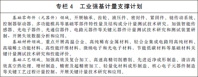 (九)支撐先進(jìn)制造與質(zhì)量提升。實施制造業(yè)計量能力提升工程,建立一批先進(jìn)制造業(yè)發(fā)展急需的高準(zhǔn)確度、高穩(wěn)定性計量基準(zhǔn)、標(biāo)準(zhǔn)。在戰(zhàn)略性新興產(chǎn)業(yè)和現(xiàn)代服務(wù)業(yè)等領(lǐng)域,建設(shè)一批國家產(chǎn)業(yè)計量測試中心和聯(lián)盟,搭建計量公共服務(wù)平臺,聚焦制造業(yè)領(lǐng)域測不了、測不全、測不準(zhǔn)難題,加強(qiáng)關(guān)鍵計量測試技術(shù)、測量方法研究和裝備研制,為產(chǎn)業(yè)發(fā)展提供全溯源鏈、全產(chǎn)業(yè)鏈、全壽命周期并具有前瞻性的計量測試服務(wù)。開展產(chǎn)業(yè)計量基礎(chǔ)能力提升行動,實施工業(yè)強(qiáng)基計量支撐計劃,充分發(fā)揮計量對基礎(chǔ)零部件(元器件)、基礎(chǔ)材料、基礎(chǔ)工藝的技術(shù)支撐和保障作用。研究建立國家工業(yè)計量基礎(chǔ)數(shù)據(jù)庫,加強(qiáng)工業(yè)制造領(lǐng)域計量檢定、校準(zhǔn)、測試和檢測數(shù)據(jù)的采集、管理和應(yīng)用。