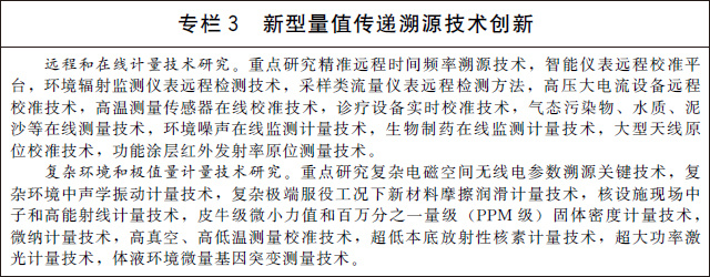(七)加強(qiáng)關(guān)鍵共性計量技術(shù)研究。加快開展量熱技術(shù)、數(shù)字化模擬測量技術(shù)、工況環(huán)境監(jiān)測技術(shù)等基礎(chǔ)共性計量技術(shù)研究。加強(qiáng)智能化計量校準(zhǔn)技術(shù)研究,開展計量軟件功能安全測評等關(guān)鍵技術(shù)研究和應(yīng)用。加強(qiáng)高精度、集成化、微型化、智能化的新型傳感技術(shù)研究,攻克高端計量測試儀器設(shè)備核心關(guān)鍵部件和技術(shù)。建立有利于計量新技術(shù)、新方法向產(chǎn)業(yè)轉(zhuǎn)移的服務(wù)平臺。