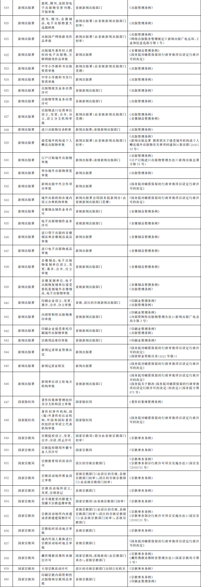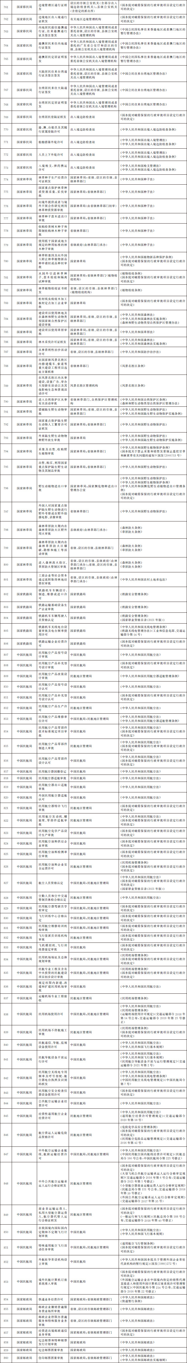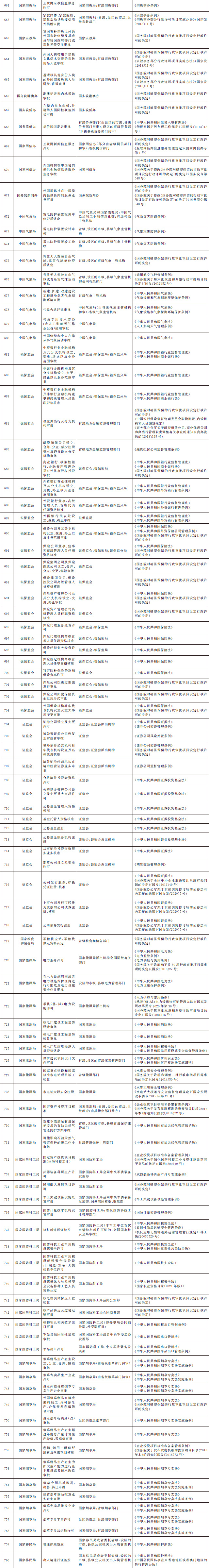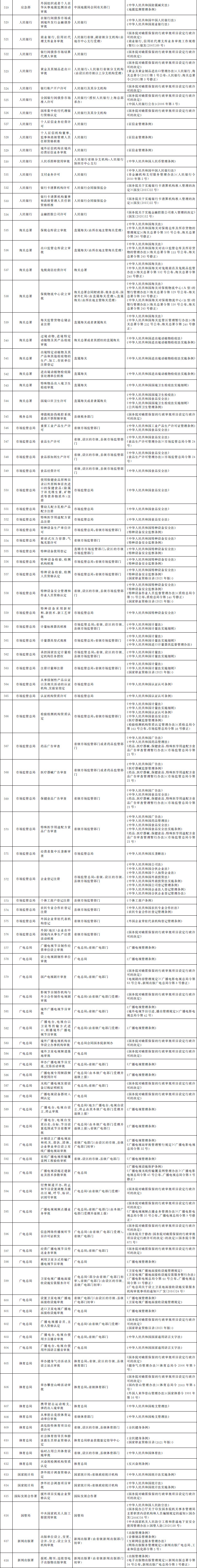 法律、行政法規(guī)、國務院決定設定的行政許可事項清單