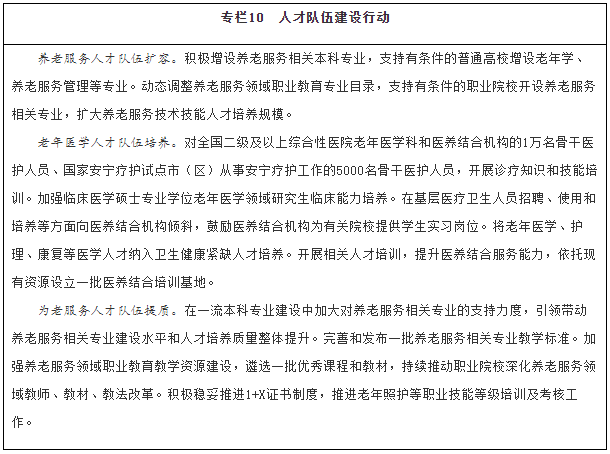 拓寬人才培養(yǎng)途徑。優(yōu)化養(yǎng)老服務專業(yè)設(shè)置,結(jié)合行業(yè)發(fā)展新業(yè)態(tài),動態(tài)調(diào)整增設(shè)相關(guān)專業(yè)并完善教學標準體系,引導普通高校、職業(yè)院校、開放大學、成人高校等加大養(yǎng)老服務人才培養(yǎng)力度。積極穩(wěn)妥推進1+X證書(“學歷證書+若干職業(yè)技能等級證書”)制度。大力推進養(yǎng)老領(lǐng)域產(chǎn)教融合,培育一批產(chǎn)教融合型養(yǎng)老企業(yè),支持院校和優(yōu)質(zhì)機構(gòu)共建合辦養(yǎng)老服務實訓基地,探索將有條件的養(yǎng)老機構(gòu)發(fā)展成實習實訓點。大力發(fā)展老年學、養(yǎng)老服務管理、健康服務與管理、中醫(yī)養(yǎng)生學相關(guān)專業(yè)本科教育。引導有條件的高校開設(shè)老年學、老年醫(yī)學、老年護理學、老年心理學、老年社會學、老年營養(yǎng)學、老年服務與管理、老年社會工作等課程,鼓勵高校自主培養(yǎng)積極應對人口老齡化相關(guān)領(lǐng)域的高水平人才,加大新技術(shù)新應用新業(yè)態(tài)的引才用人力度,為智慧健康養(yǎng)老、老齡科研、適老化產(chǎn)品研發(fā)制造等領(lǐng)域培養(yǎng)引進和儲備專業(yè)人才。落實醫(yī)師區(qū)域注冊制度,鼓勵醫(yī)務人員到醫(yī)養(yǎng)結(jié)合機構(gòu)(同時具備醫(yī)療衛(wèi)生資質(zhì)和養(yǎng)老服務能力的醫(yī)療衛(wèi)生機構(gòu)或養(yǎng)老機構(gòu))執(zhí)業(yè)。在養(yǎng)老機構(gòu)舉辦的醫(yī)療機構(gòu)中工作的醫(yī)務人員,可參照執(zhí)行基層醫(yī)務人員相關(guān)激勵政策。