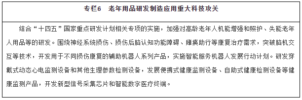 強化老年用品的科技支撐。加快推進互聯(lián)網(wǎng)、大數(shù)據(jù)、人工智能、第五代移動通信(5G)等信息技術(shù)和智能硬件在老年用品領(lǐng)域的深度應用。支持智能交互、智能操作、多機協(xié)作等關(guān)鍵技術(shù)研發(fā),提升康復輔助器具、健康監(jiān)測產(chǎn)品、養(yǎng)老監(jiān)護裝置、家庭服務機器人、日用輔助用品等適老產(chǎn)品的智能水平、實用性和安全性,開展家庭、社區(qū)、機構(gòu)等多場景的試點試用。